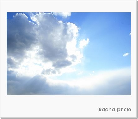 純粋な空の写真があんまりないことに気づいたので・・・ 今日は空にしてみました☆ 雲あっての空だよなぁとかしみじみ。。。。 雲から光が溢れてるとこって、天使とかいるんですかね?(^-^)☆ ってくらいまぶしくて神々しいときがあります。